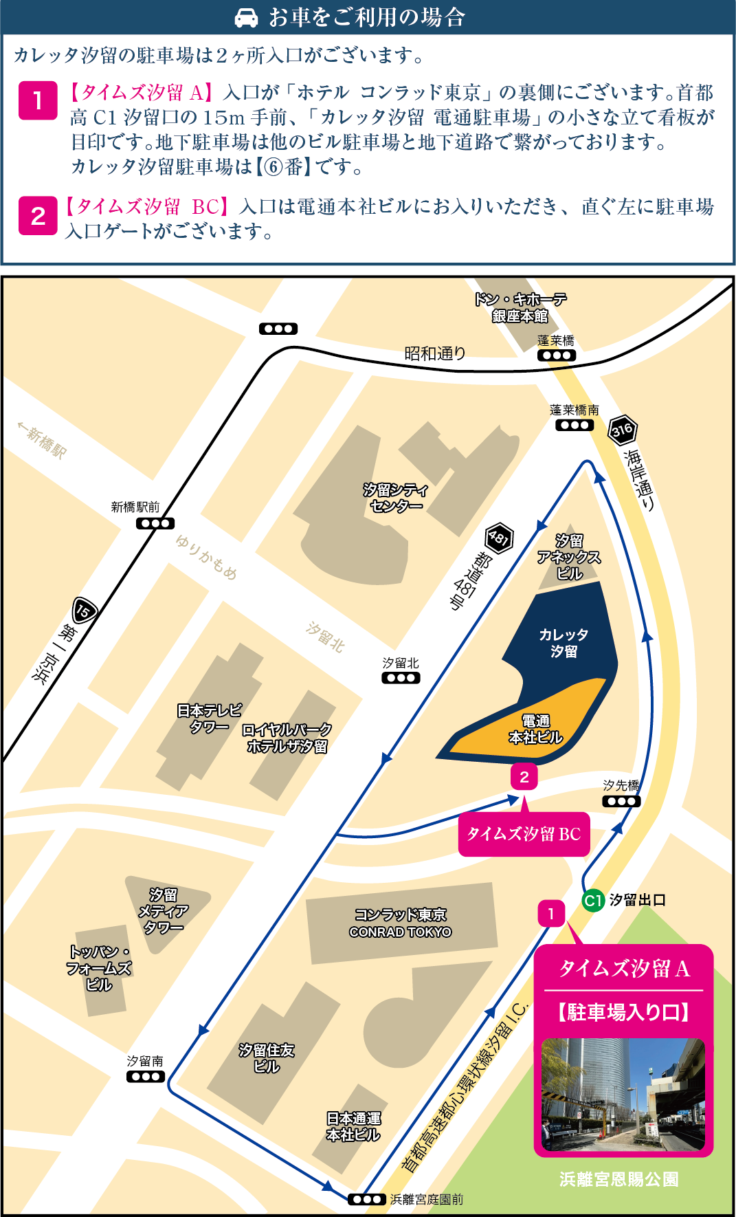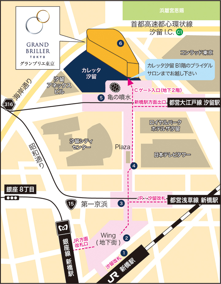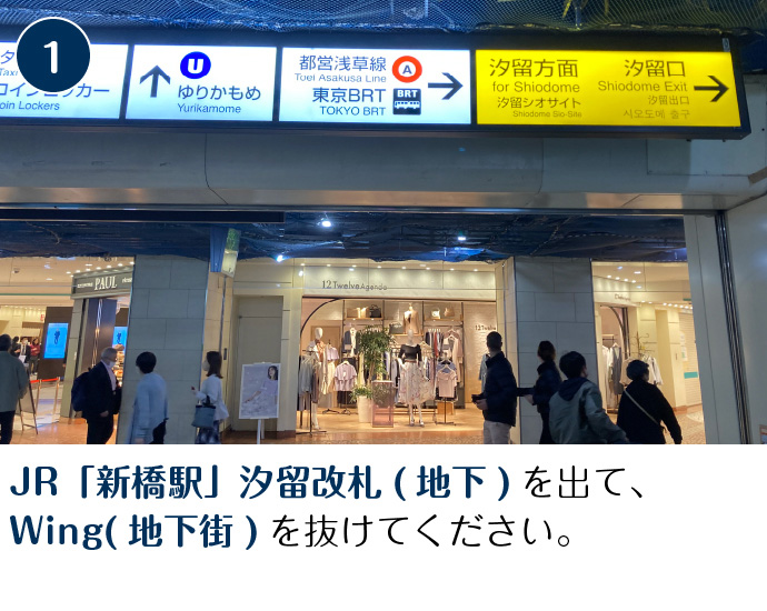 新橋駅からも地下道直通で天候を問わず移動が便利