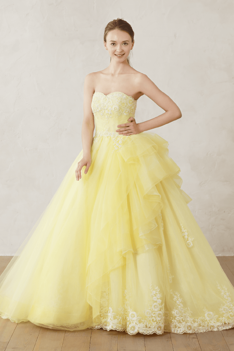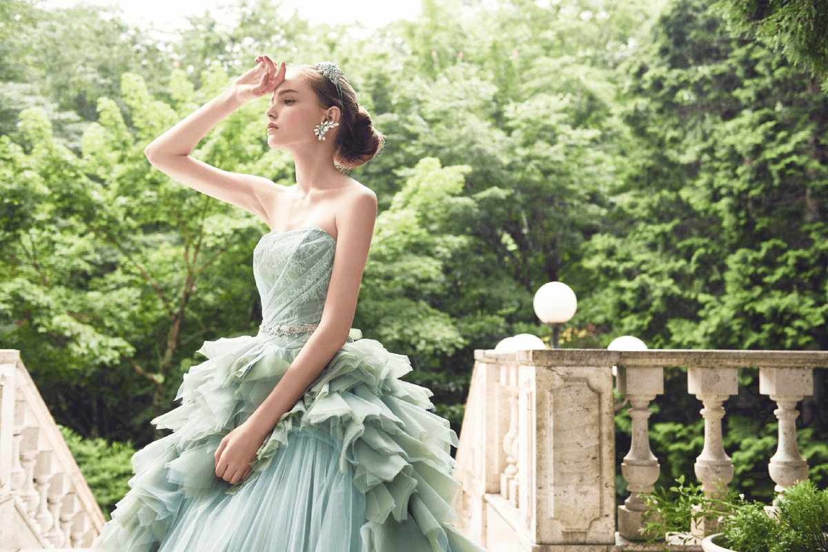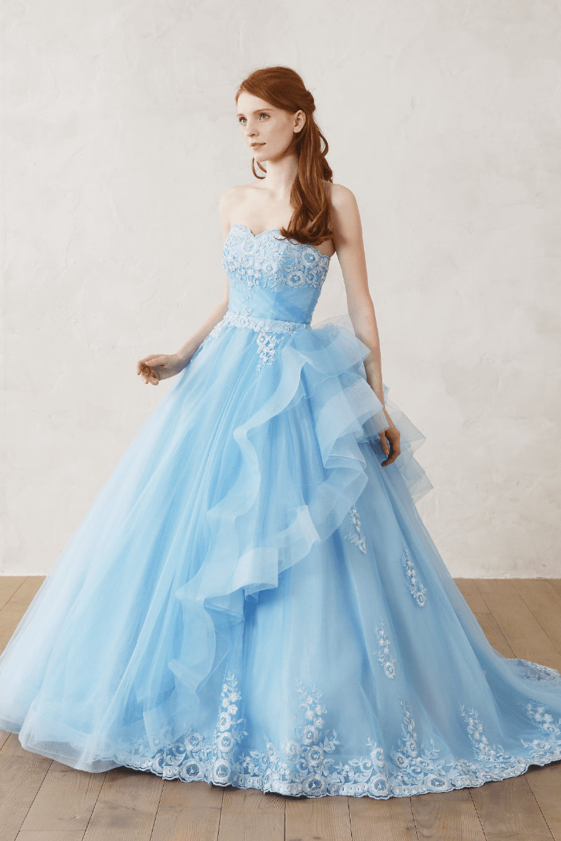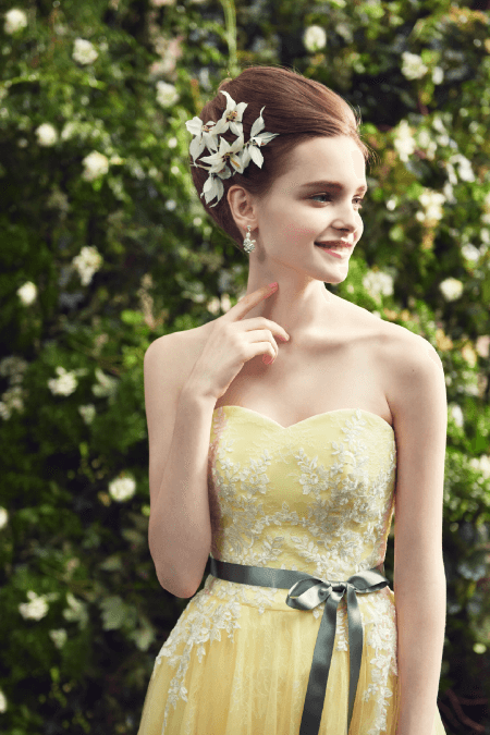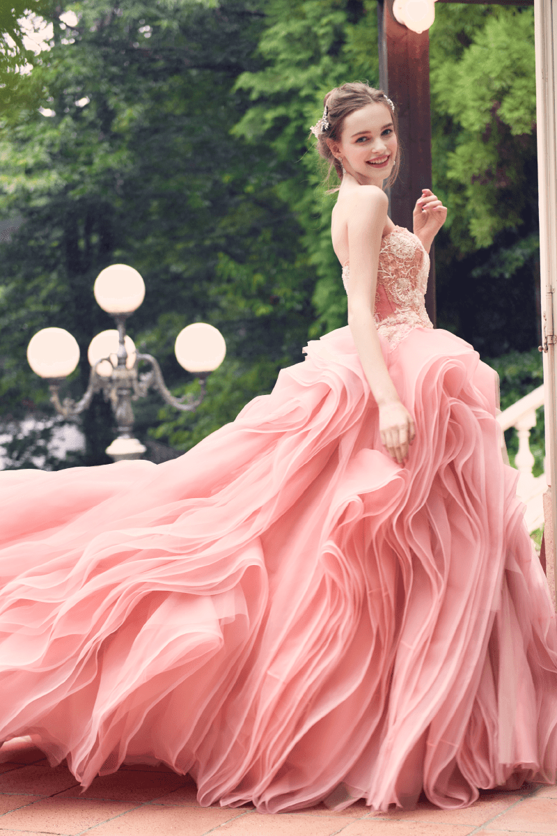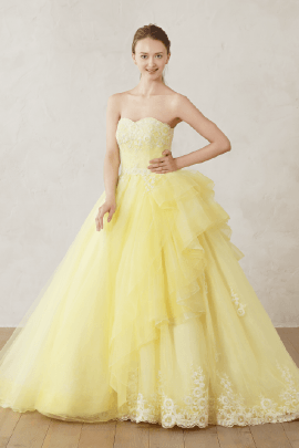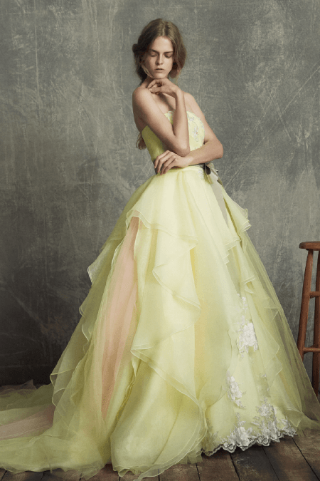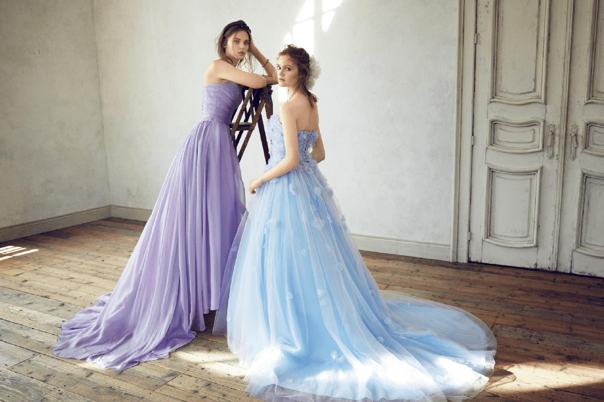 Collor Dress〔 カラードレス 〕 運命の一着をウェディング当日に一番美しく着ていただきたい ドレスをファッションとして楽しむスタイル 様々なイメージを持つ個性豊かなドレスコレクションよりドレスをファッションとして楽しむスタイル 花嫁の幸せを心から願う専属スタイリストが輝ける一着をお探しします