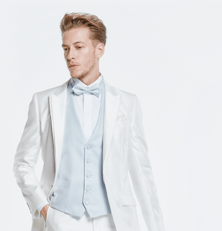 Tuxedo〔 タキシード 〕 ウェディング当日に運命の一着を 花嫁のドレスに合わせスマートな印象をご提案 フォーマルデザインからあそび心を感じるデザインまでトレンドを押さえたタキシードを幅広く展開 花嫁のドレスに合わせスマートな印象をご提案