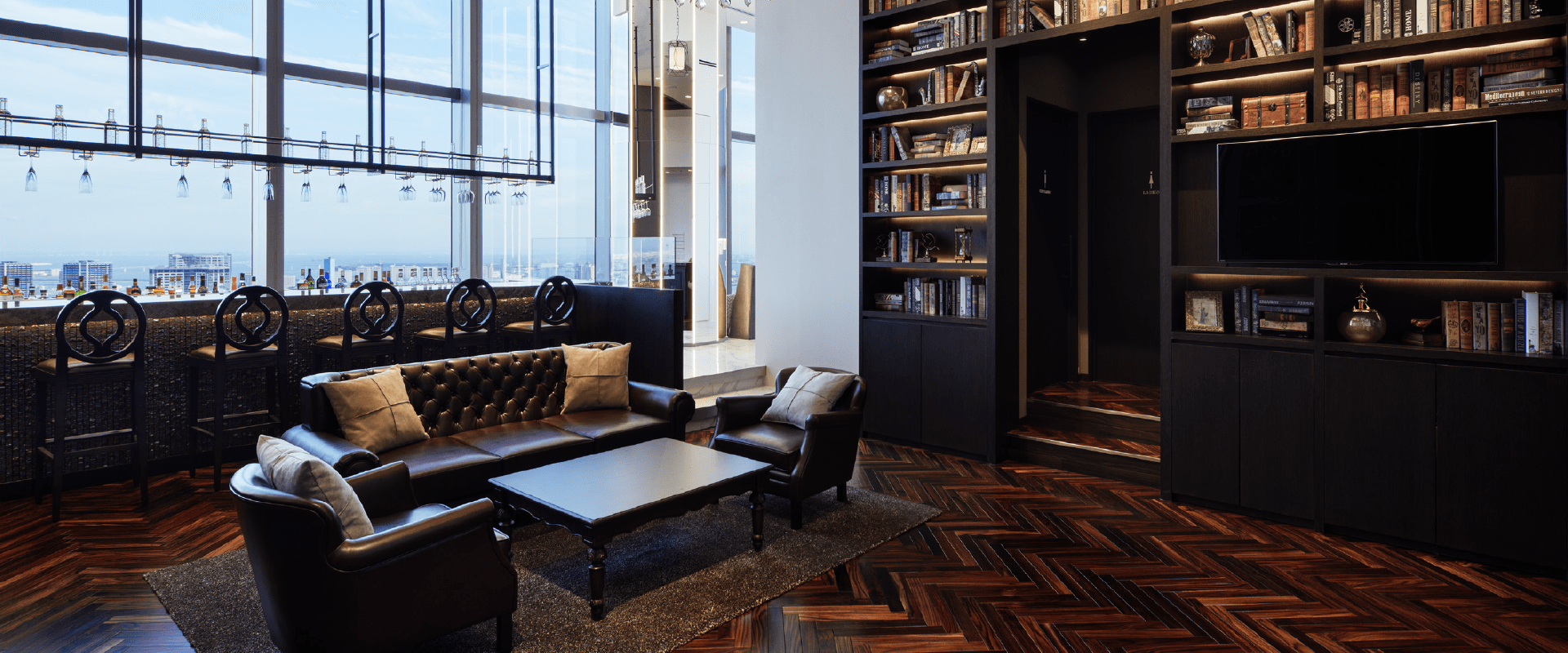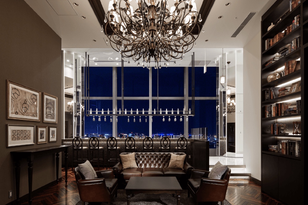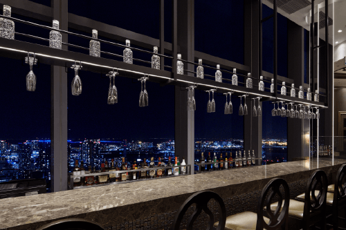 180度を超える東京屈指の絶景をより楽しんで頂ける専用バーカウンターでバーテンダーが最高のカクテルをご提供