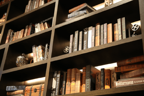 アンティーク調のソファや本棚に女性デザイナーのこだわりが