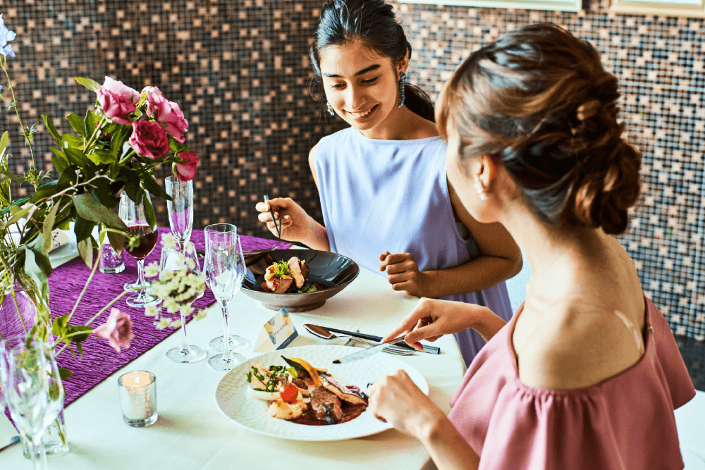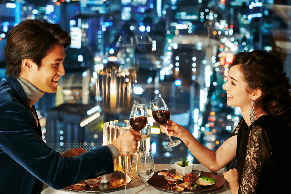 東京の名所が一望出来る大人な輝きに満ちた絶景で最高の料理をお楽しみ頂け、料理はフレンチを中心にフルコースや普段使いを想定したお好きな食べ物だけをチョイスできるアラカルトのみ(単品注文)でも可能